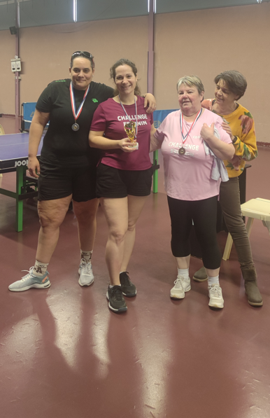 Dans le tableau 2, Céline démarrait très bien la matinée en remportant ses 3 matchs de poule. Elle n’a perdu qu’un set face à une très jeune joueuse prometteuse dans une partie au de nombreux échanges ont ravi l’assistance ! En 1/2 finale, elle l’a emporté face à Maud en 4 sets. Et elle a retrouvé en finale Mélissa (Torsac) et comme lors de leur 1er match en poule, elle s’est imposée en 3 sets, à la fois serrés et rythmés en tops / contre tops ! 1ère place donc pour Céline ! Bravo !