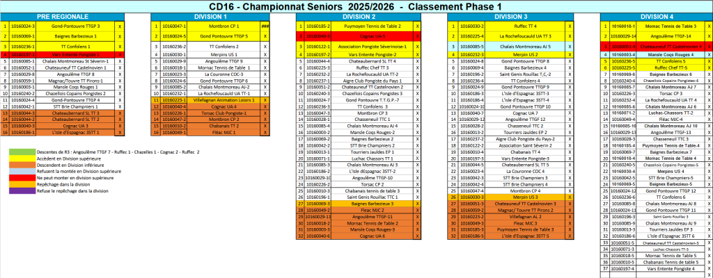Voici également le classement général par division de la 1ère phase :